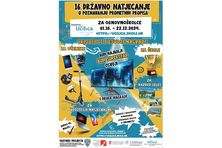 U razdoblju od 1. listopada do 22. prosinca 2024. godine provodi se državno natjecanje u poznavanju prometnih propisa za učenike osnovnih i srednjih škola u sklopu projekta ''Prometna učilica''.